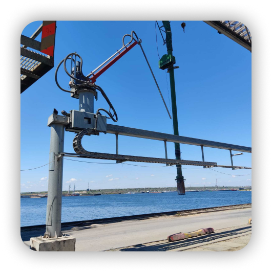 O cabeçote é equipado com motorredutor de acionamento longitudinal, motorredutor de acionamento ascendente/descendente, todos controlados por invesor de frequência. Este projeto oferece aumento de torque, força de penetração de grãos ajustável e detecção de fundo do reboque para obter uma amostra representativa ideal, este amostrador e equipado com sonda de parede dupla para permitir a coleta de um núcleo de grãos (amostragem de núcleo).